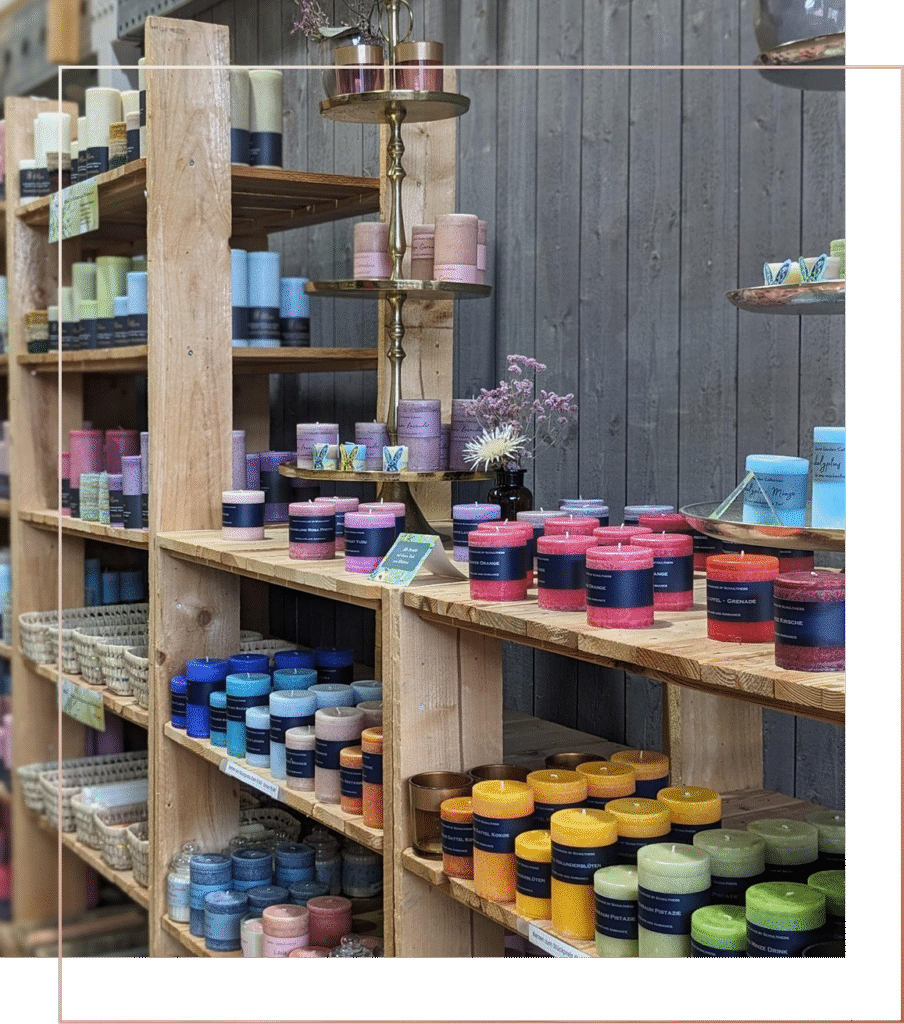 Vielfältige Auswahl an handgemachten & hochwertigen Kerzen im Sortiment.